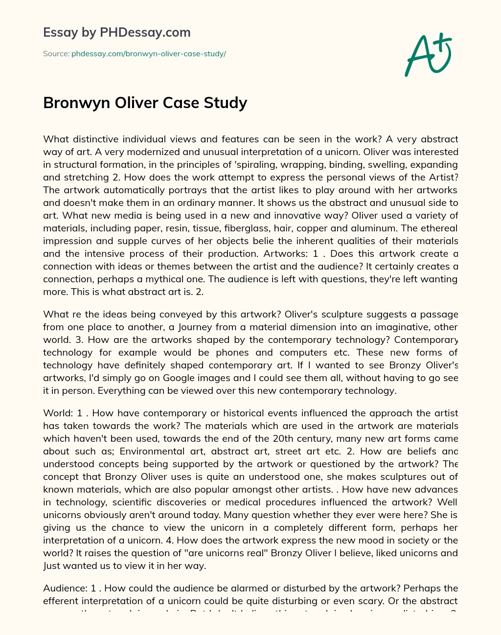 Find the latest shows, biography, and artworks for sale by bronwyn oliver... She didn't leave any personal messages, merely a note for her former boyfriend in... Her stunning metal sculptures writhe and swirl into organic forms.
